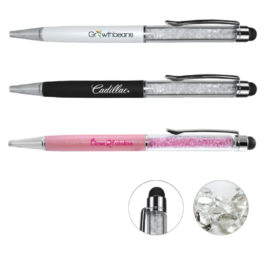 SKU: MTPC-002 Item Name: Metal Pen Crystal /w Stylus 002 Size: NA Material: Metal Available Color: Black, White, Pink Printing Option: Screen Printing